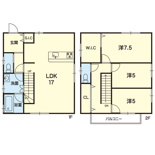| 間取 | 3LDK ( LDK 17帖 / 洋 7.5帖 / 洋 5帖 / 洋 5帖 ) |