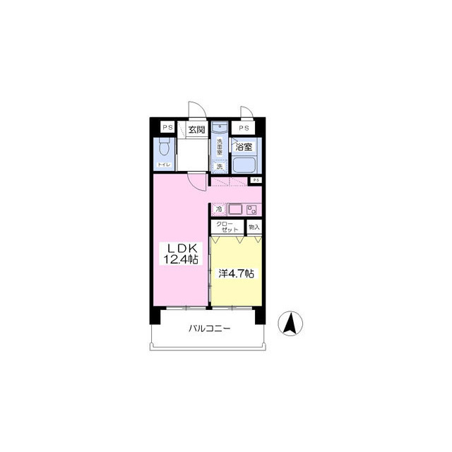 | 間取 | 1LDK ( LDK 12.4帖 / 洋 4.7帖 ) |