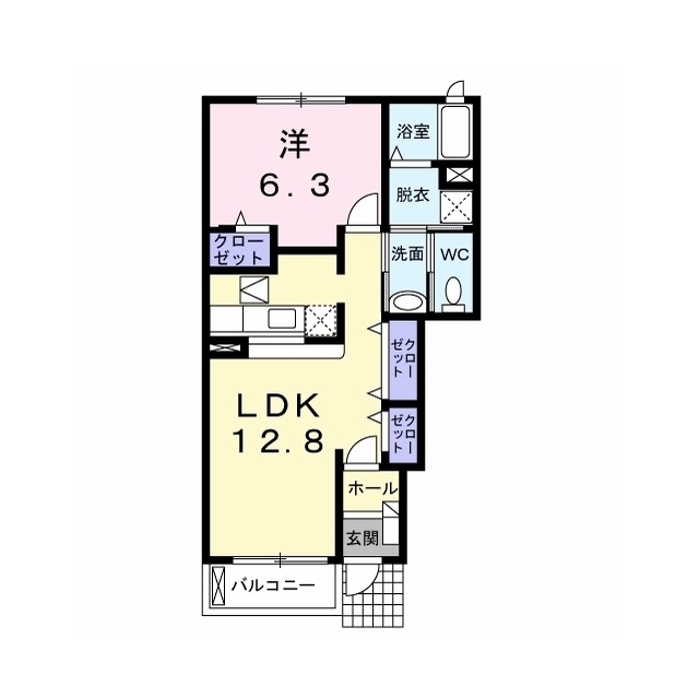 | 間取 | 1LDK ( LDK 12.8帖 / 洋 6.3帖 ) |