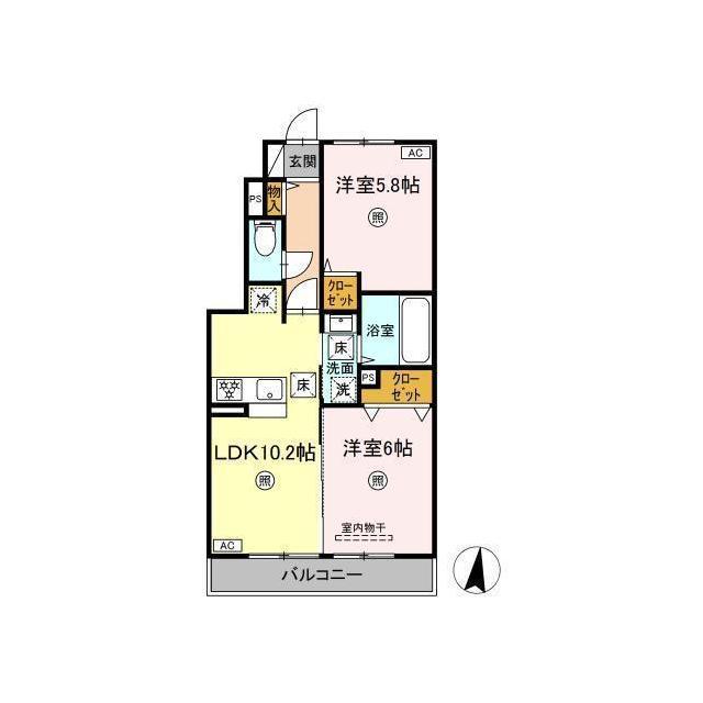 | 間取 | 2LDK ( LDK 10.2帖 / 洋 6帖 / 洋 5.8帖 ) |