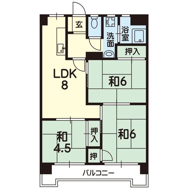 | 間取 | 3LDK ( LDK 8帖 / 和 6帖 / 和 6帖 / 和 4.5帖 ) |