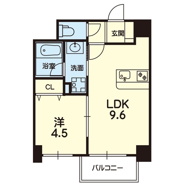 | 間取 | 1LDK ( LDK 9.6帖 / 洋 4.5帖 ) |