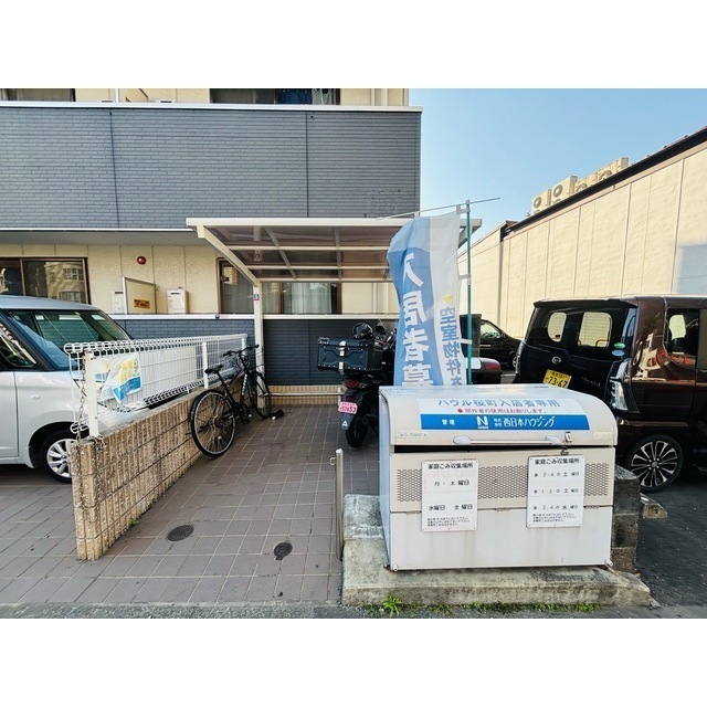 オートロック / 敷地内ゴミストッカー / 宅配ボックス / 駐輪場 / 都市ガス / 水道(私営) / 排水(公共下水) / 防犯カメラ / メールBOX(ダイヤル式) / ペット可 / 地上デジタル / インターネット無料 / アスファルト舗装 / 屋根無駐車場 / シャワー / 冷暖房 / インターホン(TV) / 室内洗濯置場 / システムキッチン / 電話設置可 / 専用台所 / ガスコンロ / 専用浴室(トイレ別) / 専用トイレ(水洗) / 洗面(浴室別) / クローゼット / シューズボックス / ウォシュレット / 2口ガスコンロ / モニター付インターホン(カラー) / 角部屋 / ペット可 / 給湯(都市ガス)