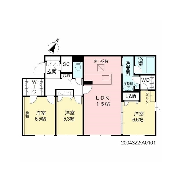 | 間取 | 3LDK ( LDK 15帖 / 洋 7.1帖 / 洋 6.6帖 / 洋 5.3帖 ) |
