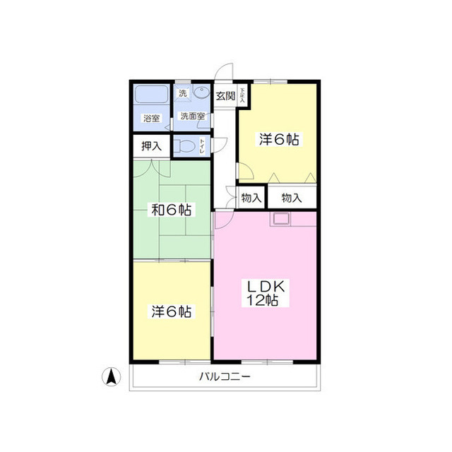 | 間取 | 3LDK ( LDK 12帖 / 和 6帖 / 洋 6帖 / 洋 6帖 ) |
