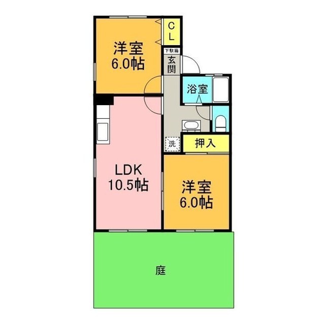 | 間取 | 2LDK ( LDK 10.5帖 / 洋 6帖 / 洋 6帖 ) |