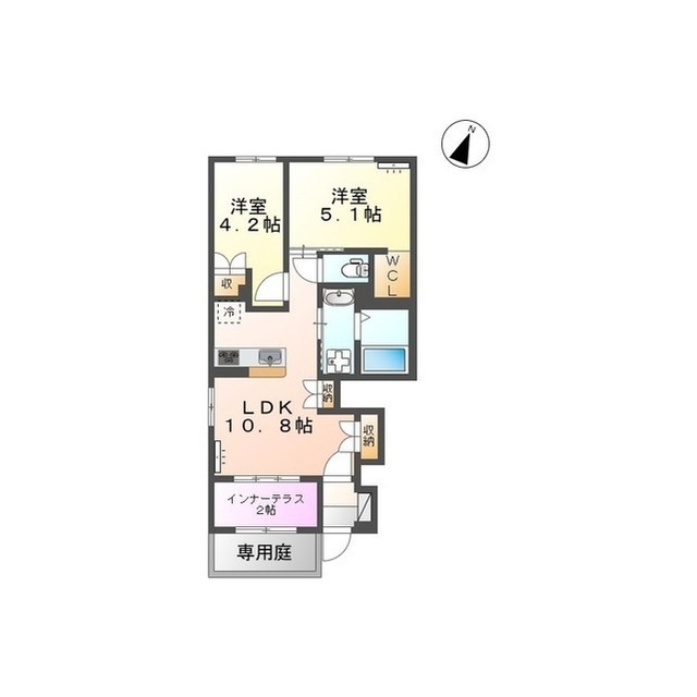 | 間取 | 2LDK ( LDK 10.8帖 / 洋 5.1帖 / 洋 4.2帖 ) |
