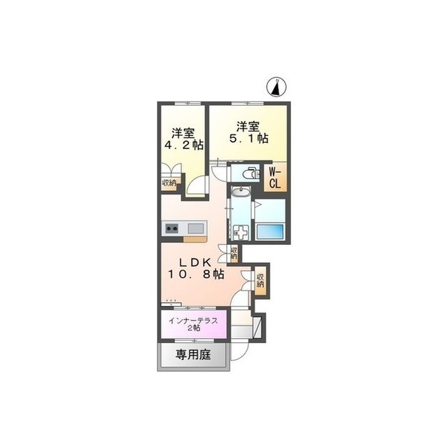 | 間取 | 2LDK ( LDK 10.8帖 / 洋 5.1帖 / 洋 4.2帖 ) |