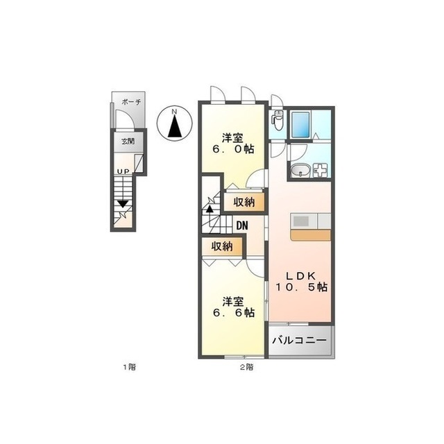 | 間取 | 2LDK ( LDK 10.5帖 / 洋 6.6帖 / 洋 6帖 ) |