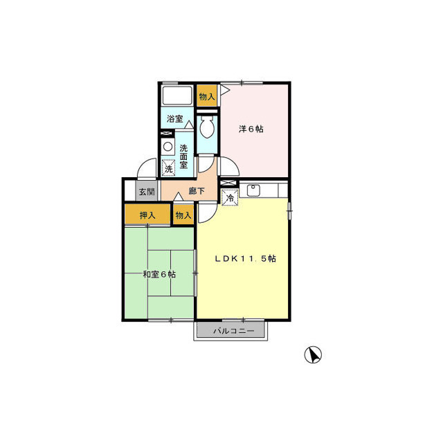 | 間取 | 2LDK ( LDK 11.5帖 / 和 6帖 / 洋 6帖 ) |