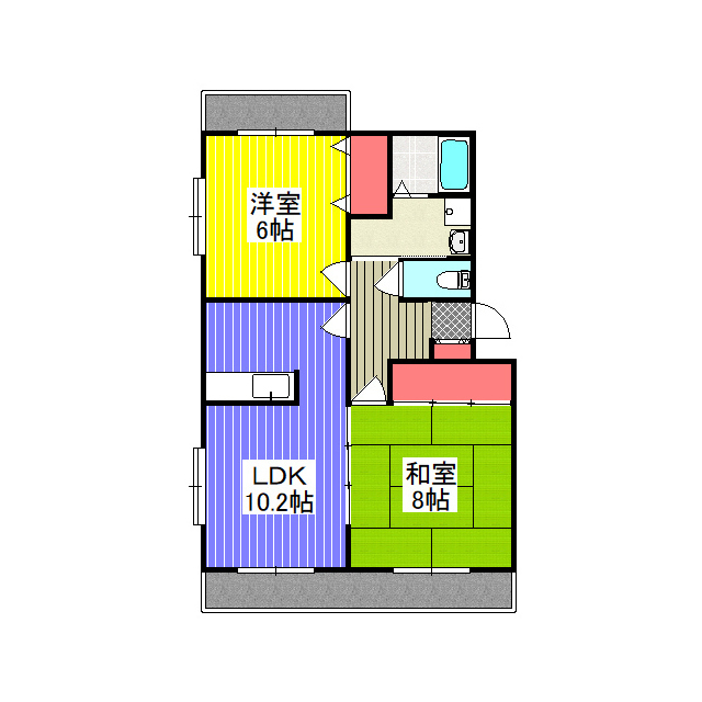 | 間取 | 2LDK ( LDK 10.2帖 / 和 8帖 / 洋 6帖 ) |
