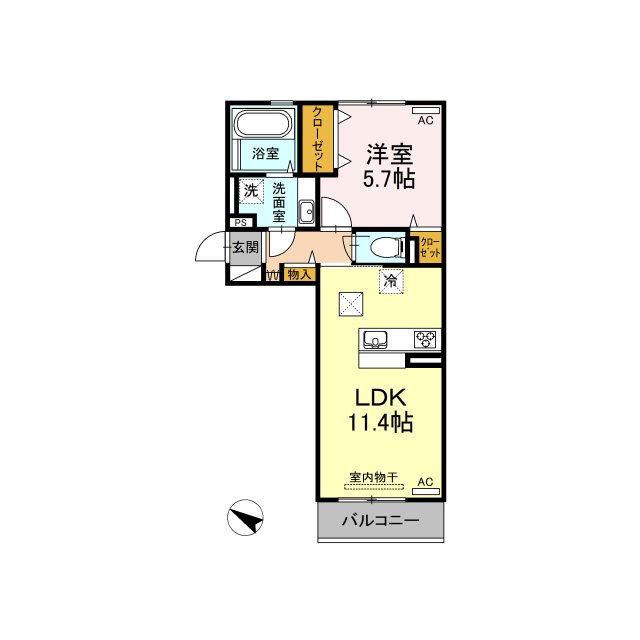 | 間取 | 1LDK ( LDK 11.4帖 / 洋 5.7帖 ) |