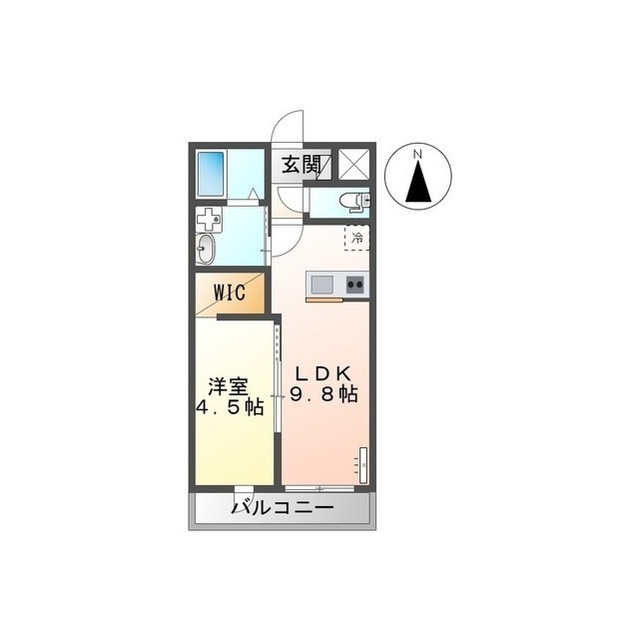 | 間取 | 1LDK ( LDK 9.8帖 / 洋 4.5帖 ) |