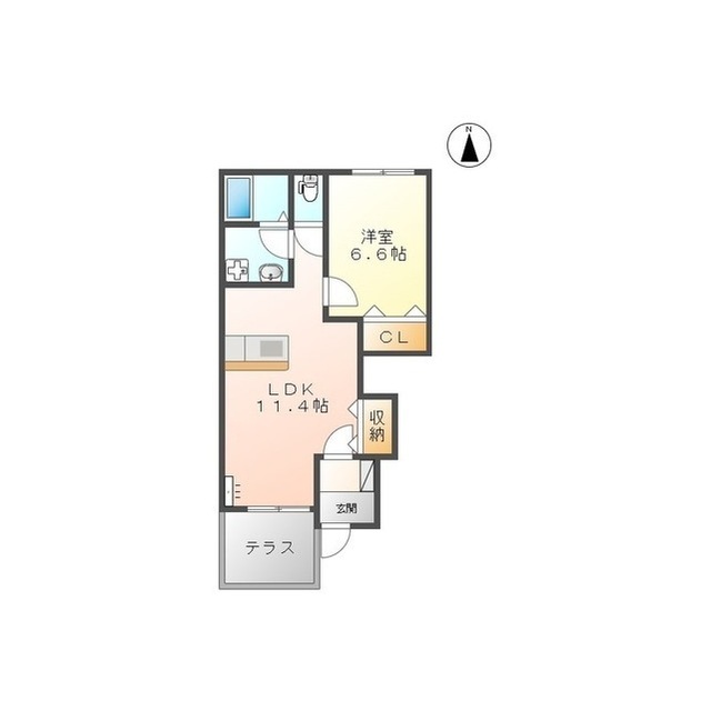 | 間取 | 1LDK ( LDK 11.4帖 / 洋 6.6帖 ) |