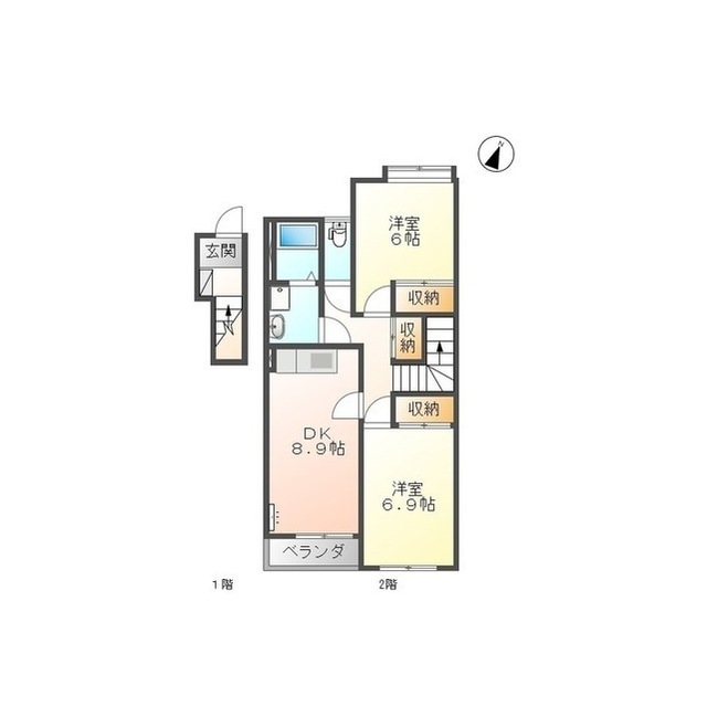 | 間取 | 2DK ( DK 8.9帖 / 洋 6.9帖 / 洋 6帖 ) |