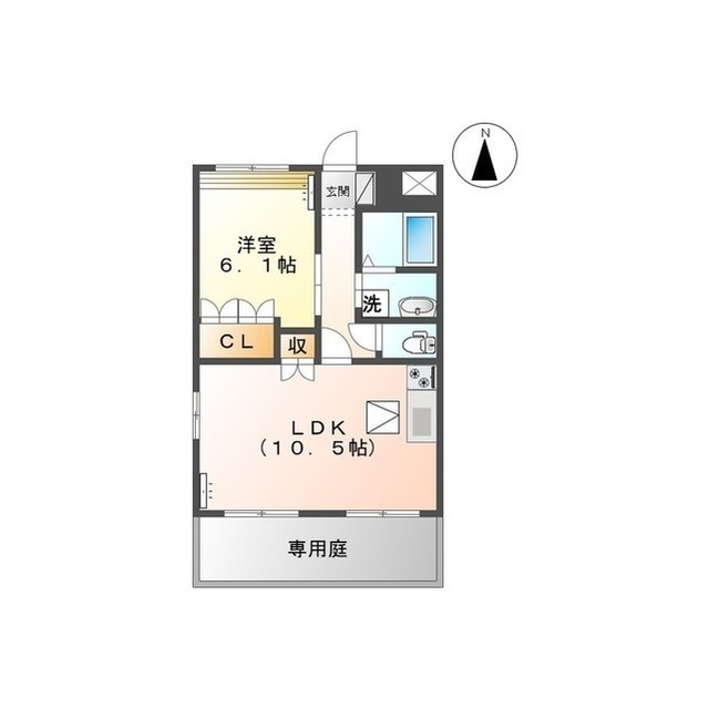 | 間取 | 1LDK ( LDK 10.5帖 / 洋 6.1帖 ) |