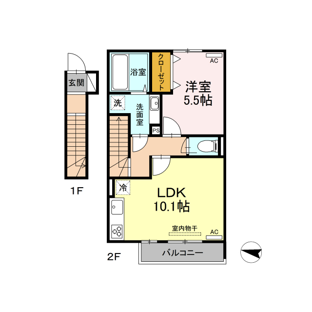 | 間取 | 1LDK ( LDK 10.1帖 / 洋 5.5帖 ) |