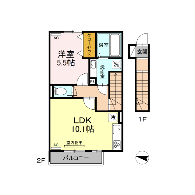 | 間取 | 1LDK ( LDK 10.1帖 / 洋 5.5帖 ) |