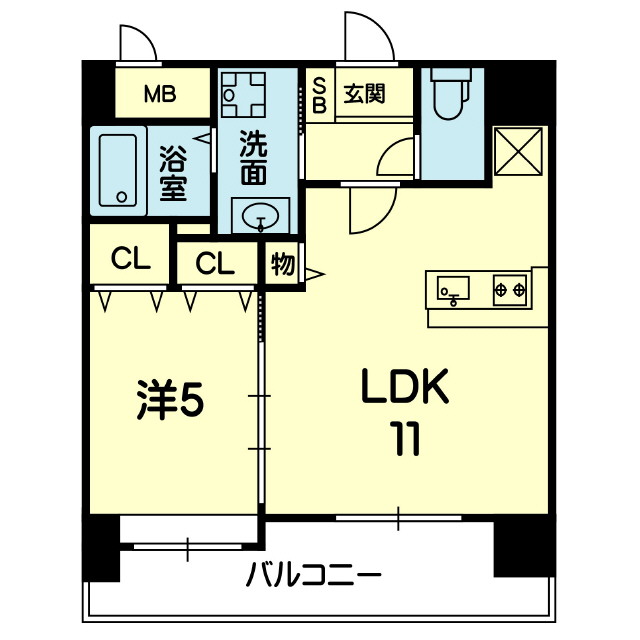 | 間取 | 1LDK ( LDK 11帖 / 洋 5帖 ) |