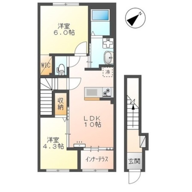 | 間取 | 2LDK ( LDK 10帖 / 洋 6帖 / 洋 4.3帖 ) |
