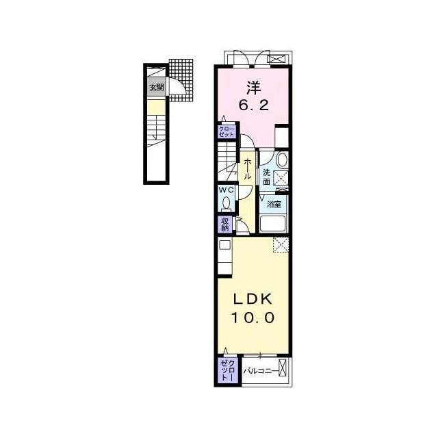 | 間取 | 1LDK ( LDK 10帖 / 洋 6.2帖 ) |