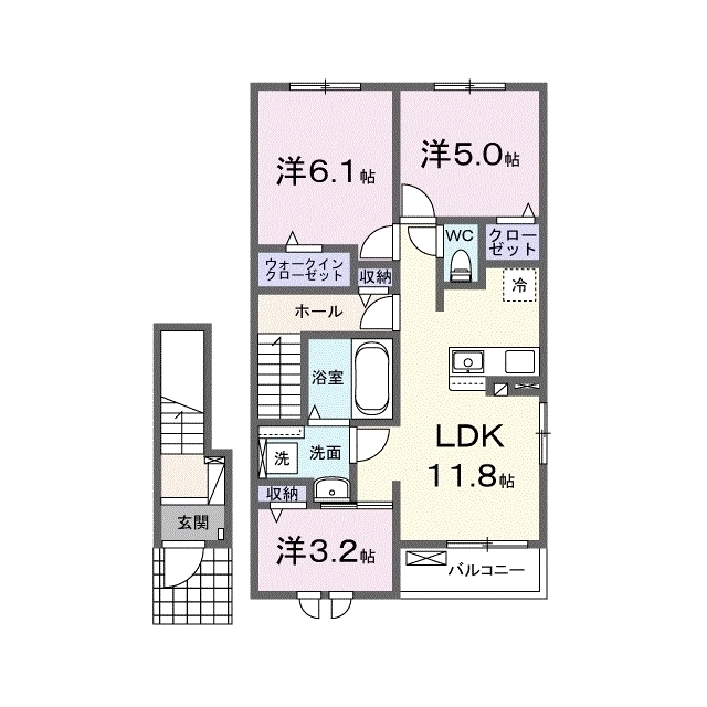 | 間取 | 3LDK ( LDK 11.8帖 / 洋 6.1帖 / 洋 5帖 / 洋 3.2帖 ) |