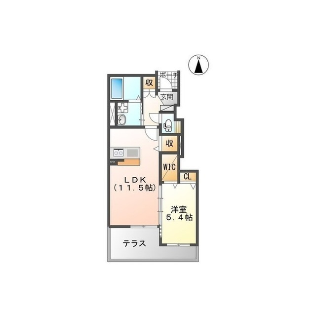 | 間取 | 1LDK ( LDK 11.5帖 / 洋 5.4帖 ) |