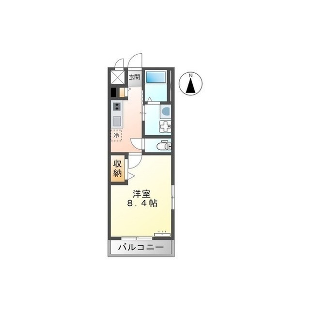 | 間取 | 1K ( K 3帖 / 洋 8.4帖 ) |