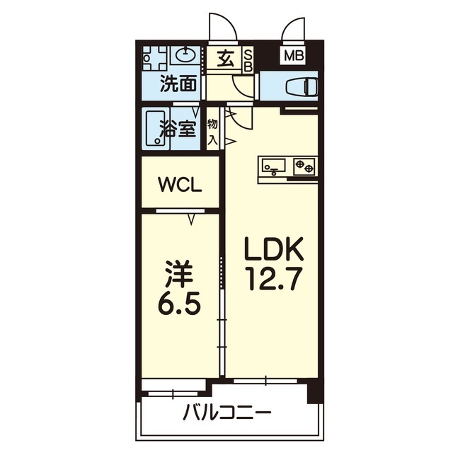 | 間取 | 1LDK ( LDK 12.7帖 / 洋 6.5帖 ) |