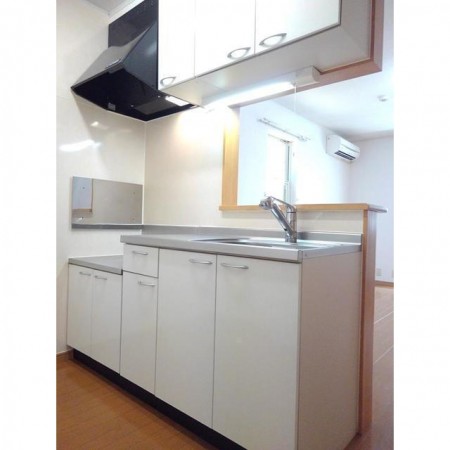 | 設備 | 駐輪場 / LPガス / 水道(公営) / BSアンテナ / アスファルト舗装 / トイレ換気扇 / 浴室換気扇 / 給湯(LPガス) / シャワー / 冷暖房 / インターホン(TV) / 室内洗濯置場 / フローリング / 電話設置可 / 専用トイレ(水洗) / 洗面(浴室別) / シューズボックス | ||