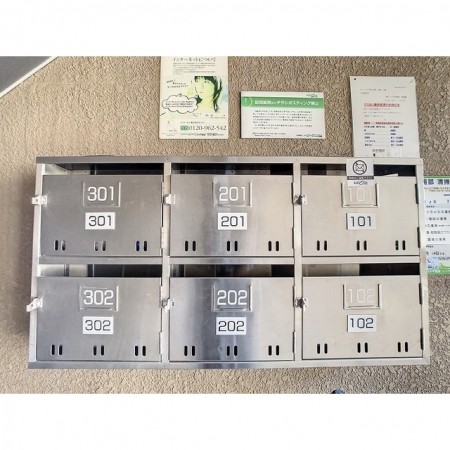 | 設備 | 駐輪場 / LPガス / 水道(私営) / 排水(公共下水) / 集合ポスト / CATV / 地上デジタル / アスファルト舗装 / 屋根無駐車場 / トイレ換気扇 / 給湯(LPガス) / シャワー / 冷暖房 / インターホン / 室内洗濯置場 / フローリング / 電話設置可 / バルコニー / 専用台所 / ガスコンロ設置可 / 専用浴室(トイレ別) / 専用トイレ(水洗) / 洗面(浴室と一緒) / クローゼット / シューズボックス / ウォシュレット / 対面カウンターキッチン / 角部屋 / サーモ水栓 | ||