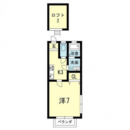 | 間取 | 1K ( K 3帖 / 洋 7帖 / ロフト 2帖 ) | 専有面積 | 26.50㎡ |