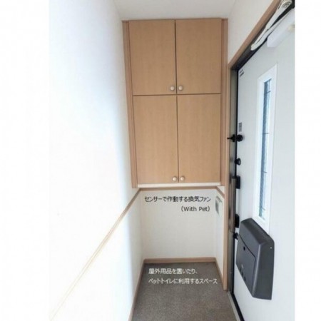 | 設備 | 駐輪場 / ペット可 / 地上デジタル / アスファルト舗装 / 屋根無駐車場 / シャワー / 室内洗濯置場 / バルコニー / ガスコンロ設置可 / 専用浴室(トイレ別) / 専用トイレ(水洗) / 洗面(浴室別) / 洋間 / クローゼット / シューズボックス / ウォシュレット / 対面カウンターキッチン / モニター付インターホン(カラー) / 角部屋 / ペット可 | ||