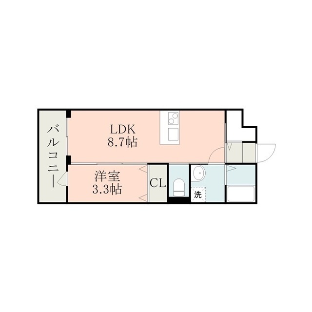 | 間取 | 1LDK ( LDK 8.7帖 / 洋 3.3帖 ) |