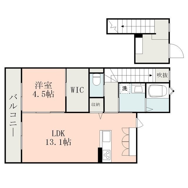 | 間取 | 1LDK ( LDK 13.1帖 / 洋 4.5帖 ) |