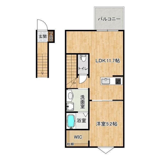 | 間取 | 1LDK ( LDK 11.7帖 / 洋 5.2帖 ) |