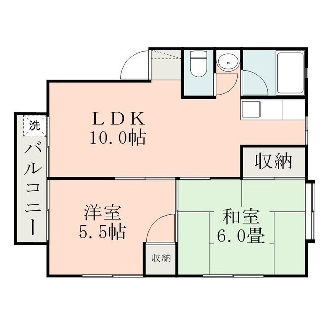 | 間取 | 2LDK ( LDK 10帖 / 和 6帖 / 洋 5.5帖 ) |