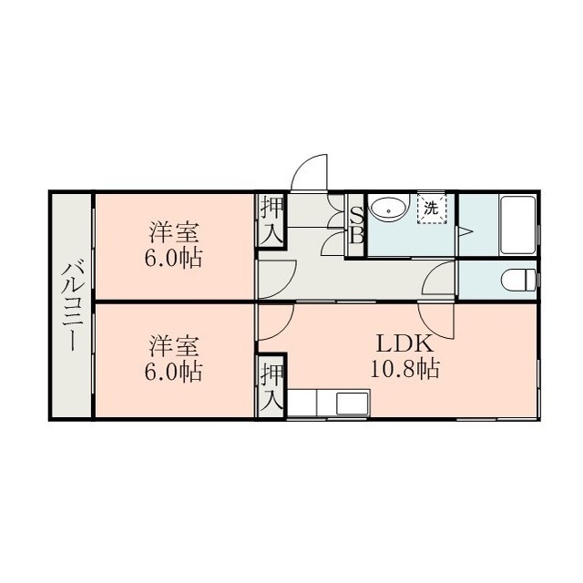| 間取 | 2LDK ( LDK 10.8帖 / 洋 6帖 / 洋 6帖 ) |