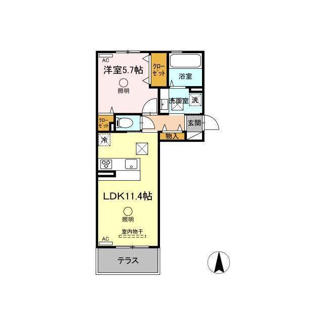 | 間取 | 1LDK ( LDK 11.4帖 / 洋 5.7帖 ) |