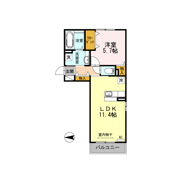 | 間取 | 1LDK ( LDK 11.4帖 / 洋 5.7帖 ) |