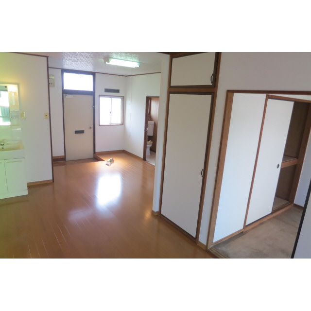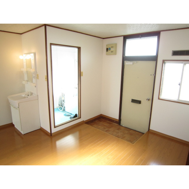 LPガス / 水道(公営) / 排水(公共下水) / 共同トイレ(水洗) / 地上デジタル / アスファルト舗装 / 屋根無駐車場 / 給湯(LPガス) / シャワー / フローリング / 電話設置可 / 出窓 / バルコニー / 専用台所 / ガスコンロ設置可 / 専用浴室(トイレ別) / 専用トイレ(水洗) / 洗面(浴室別) / 洋間 / CFシート / クローゼット / シューズボックス / チャイム / 角部屋