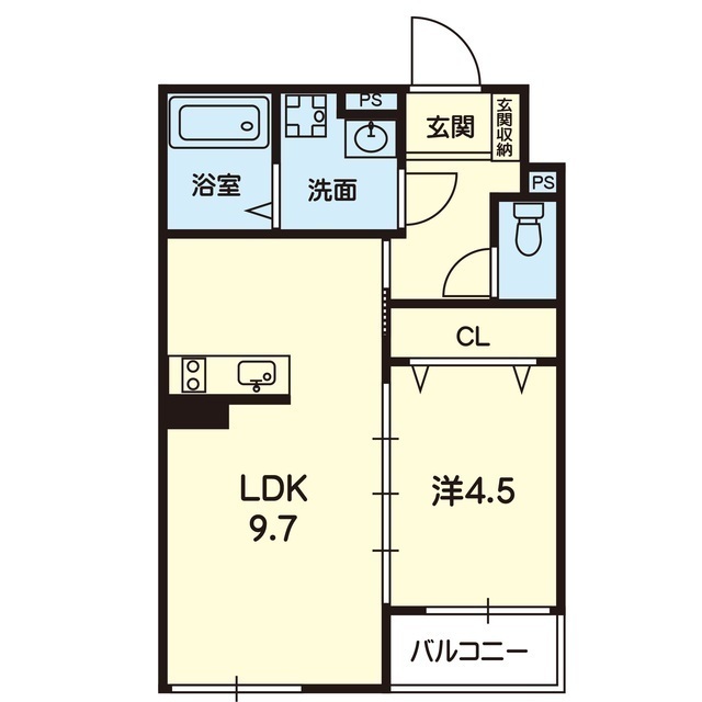 | 間取 | 1LDK ( LDK 9.7帖 / 洋 4.5帖 ) |