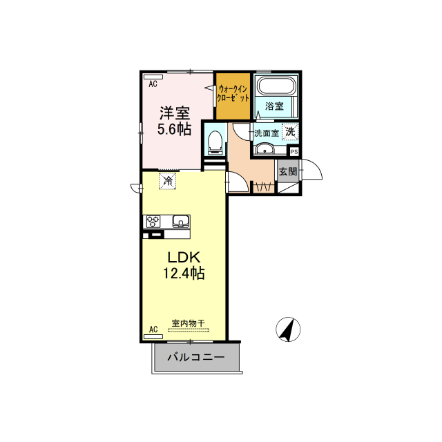 間取 | 1LDK ( LDK 12.4帖 / 洋 5.6帖 ) |