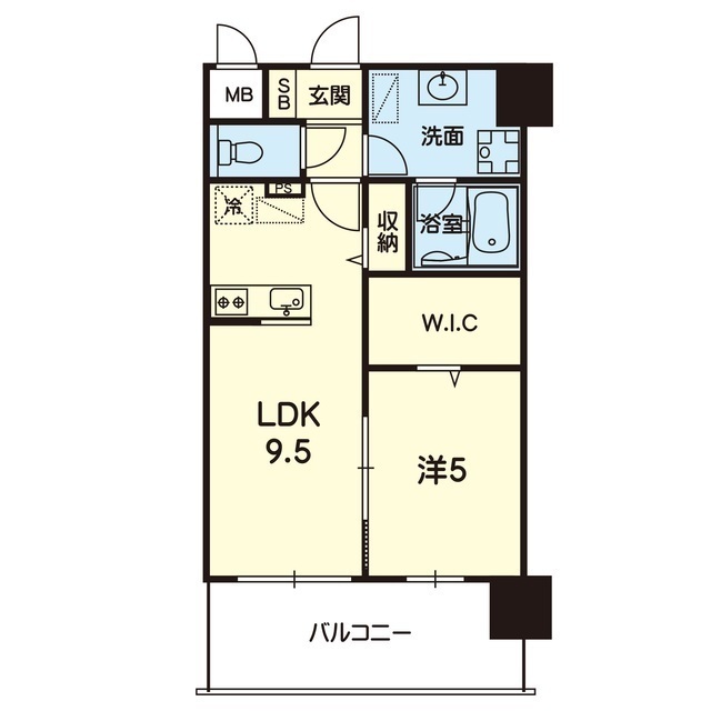 | 間取 | 1LDK ( LDK 9.5帖 / 洋 5帖 ) |