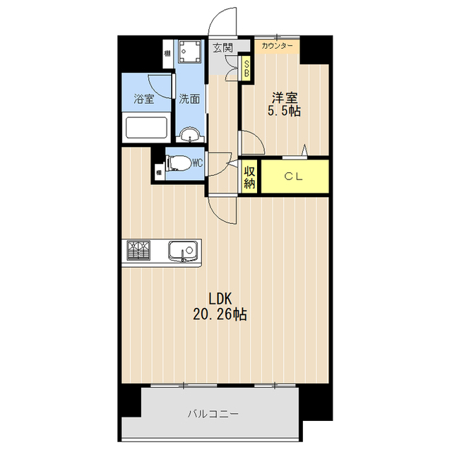| 間取 | 1LDK ( LDK 20.26帖 / 洋 5.5帖 ) |