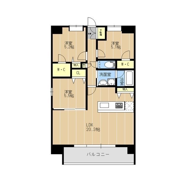 | 間取 | 3LDK ( LDK 20.3帖 / 洋 5.5帖 / 洋 5.2帖 / 洋 5.1帖 ) |