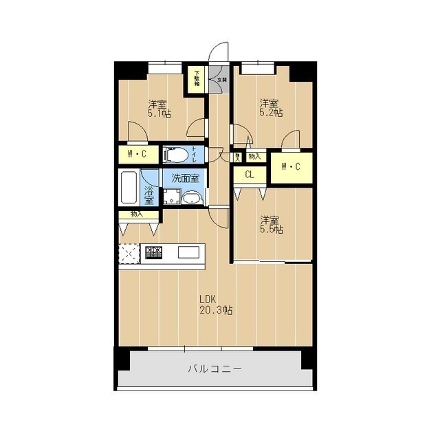 | 間取 | 3LDK ( LDK 20.3帖 / 洋 5.5帖 / 洋 5.2帖 / 洋 5.1帖 ) |