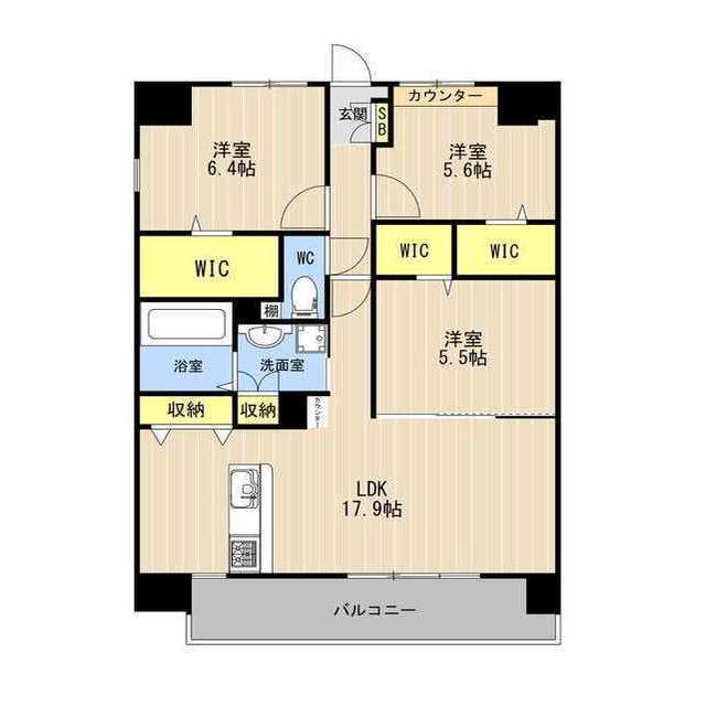 | 間取 | 3LDK ( LDK 17.9帖 / 洋 6.4帖 / 洋 5.6帖 / 洋 5.5帖 ) |