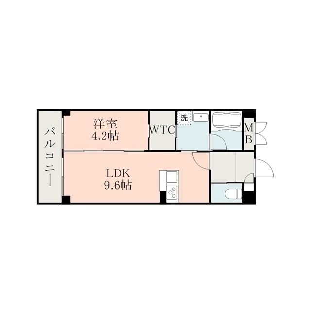 | 間取 | 1LDK ( LDK 9.6帖 / 洋 4.2帖 ) |