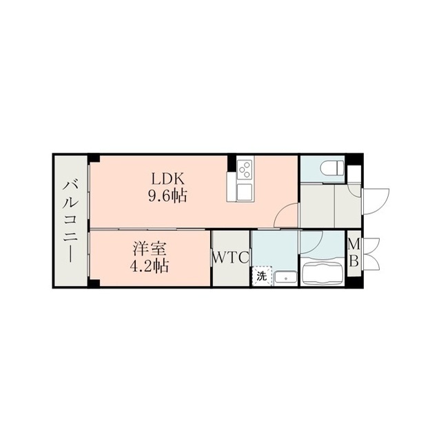 | 間取 | 1LDK ( LDK 9.6帖 / 洋 4.2帖 ) |